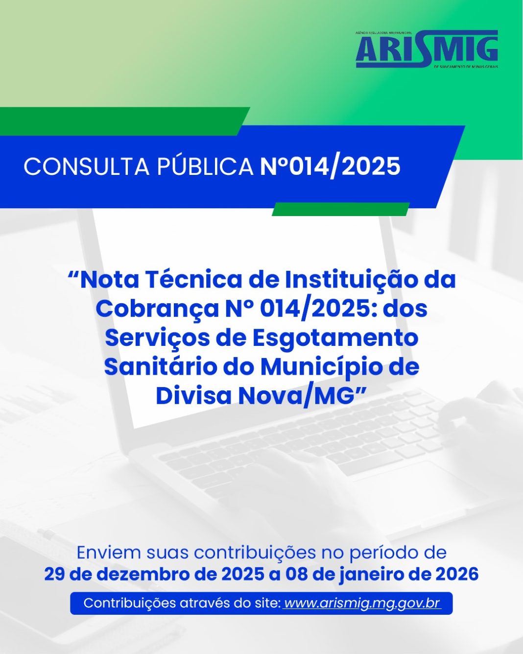 A Arismig receberá de 29 de dezembro de 2025 a 08 de janeiro de 2026, contribuições para a Consulta Pública nº 014/2025.
